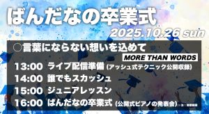 これまで私の懸命にして悲惨なピアノ演奏と共に大学生やジュニアの卒業生を送り出してきたばんだながまさか自分の卒業のために自ら演奏することになるとは夢にも思いませんでした、という件のご挨拶を最期に私はアッシュを去ることにしました( ̄▽ ̄)
