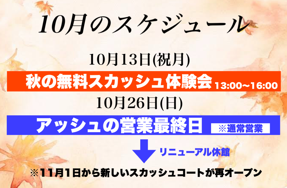 スカッシュを始めたばかりの子供でもスカッシュに慣れていない人も試合に出る人もアッシュとスカッシュに親しんでもらえるようなイベントです💫