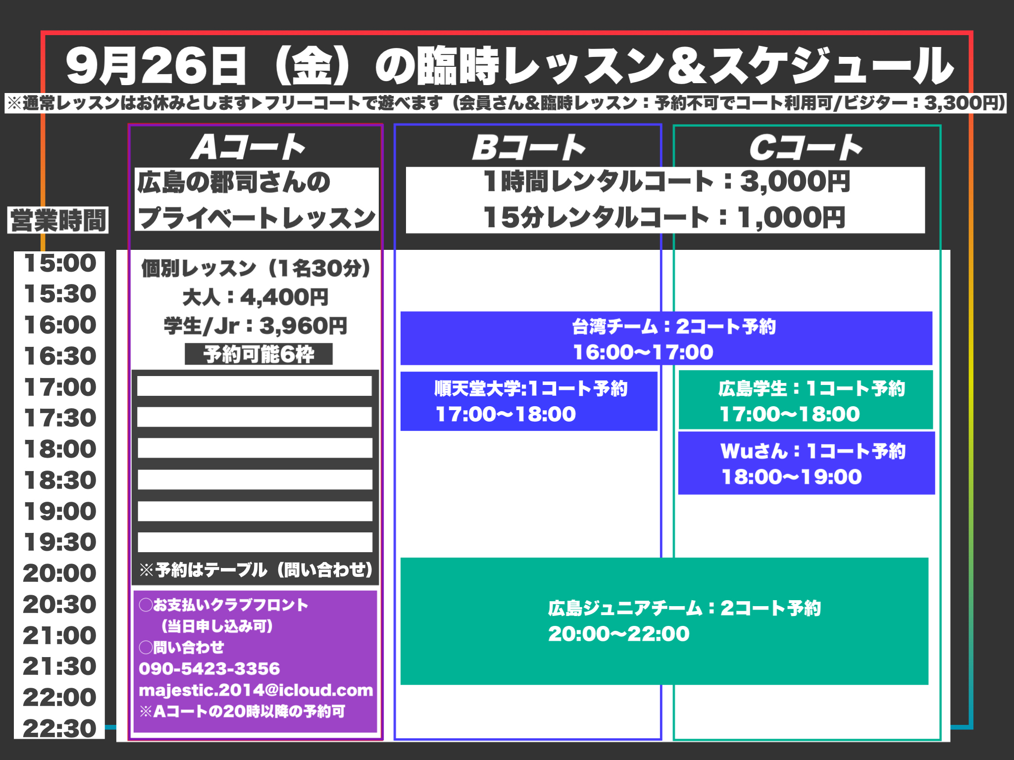 2フロントやコートにて受付を行っているので予約をしてもらっています